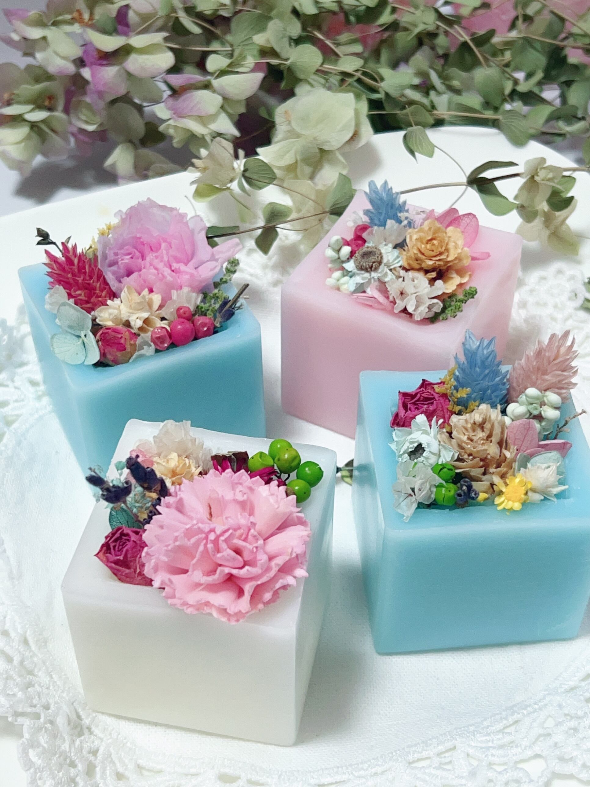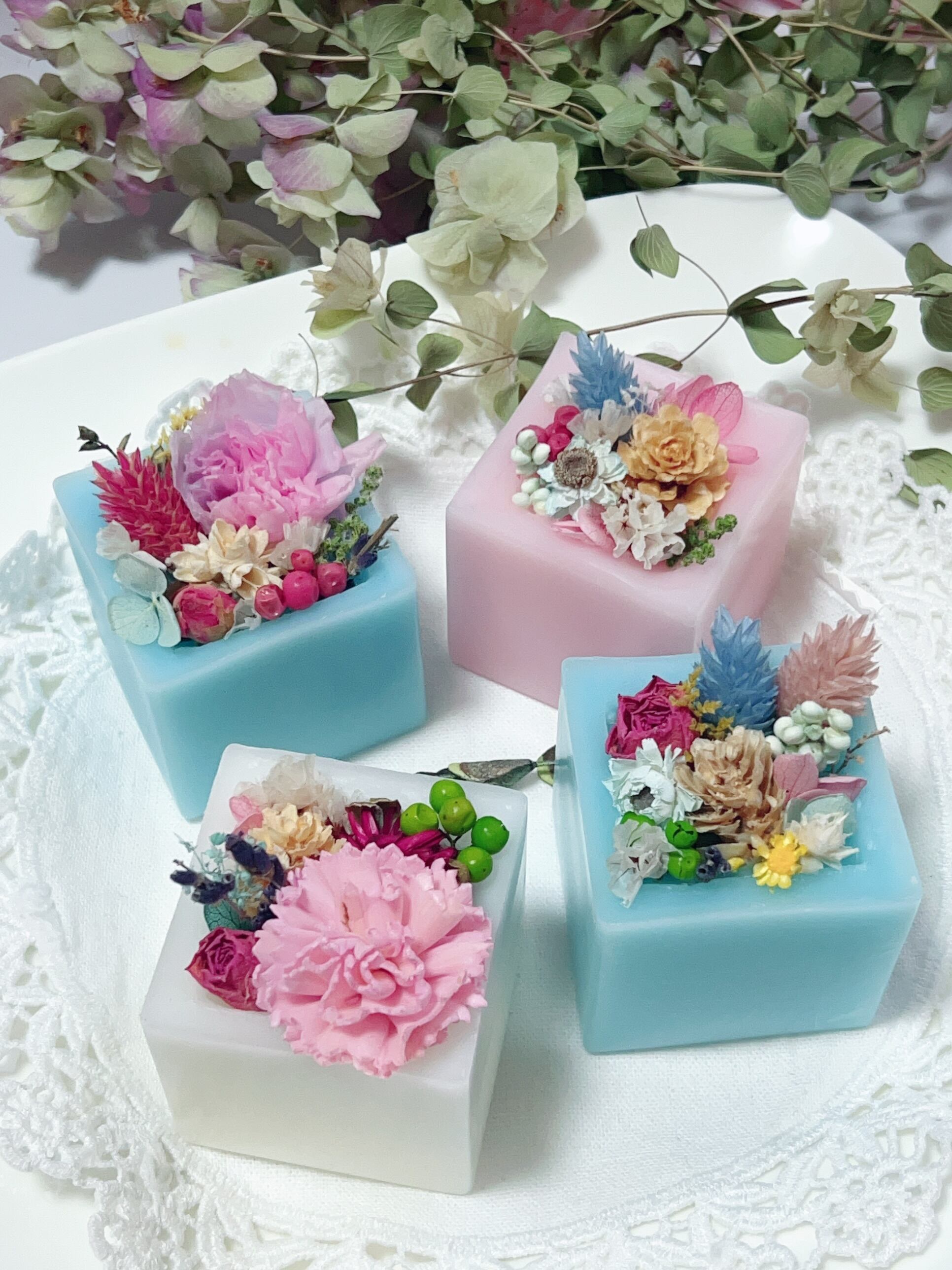 アロマワックスサシェとはキャンドルの原料であるワックスを固めてドライフラワーやアロマで香り付けしたもの。