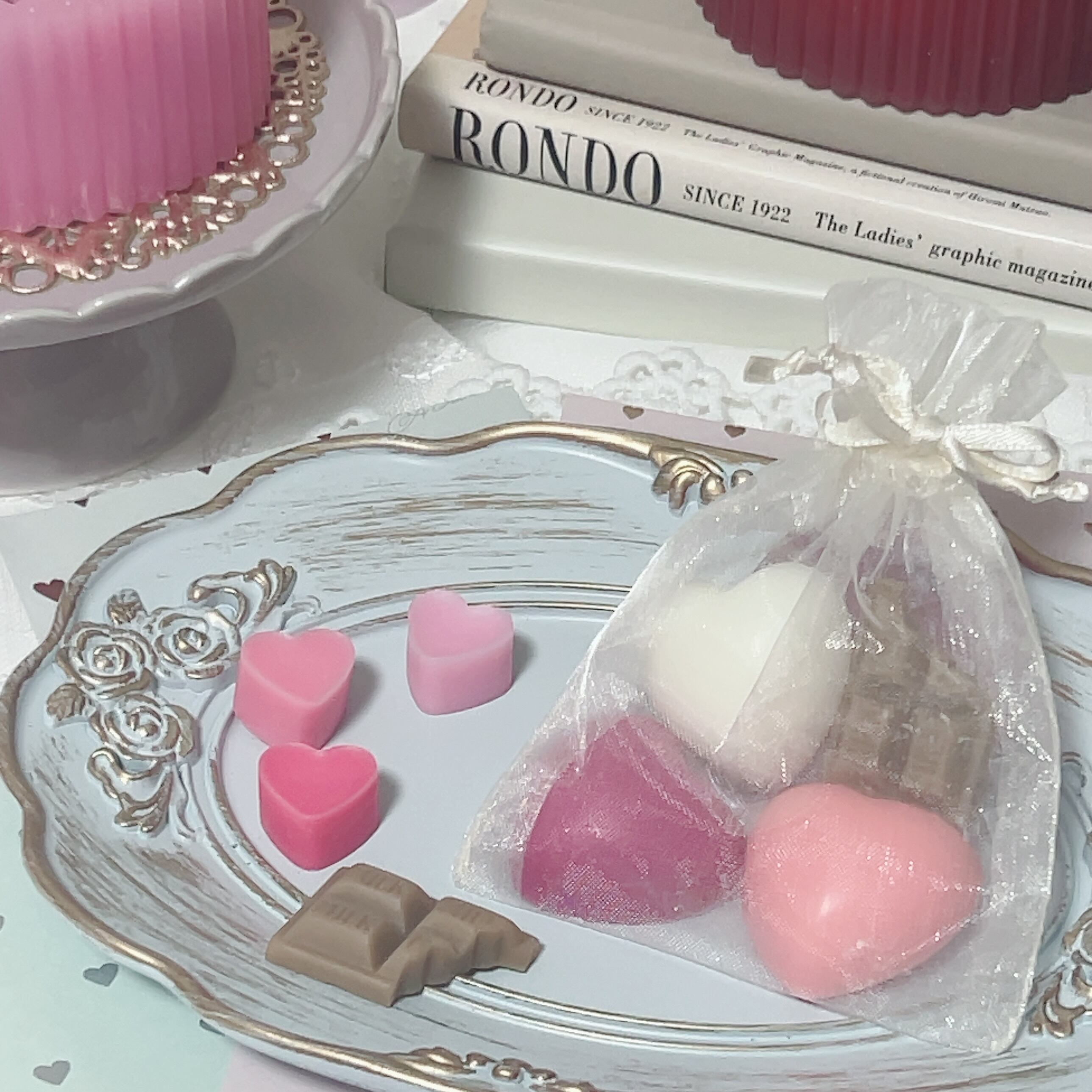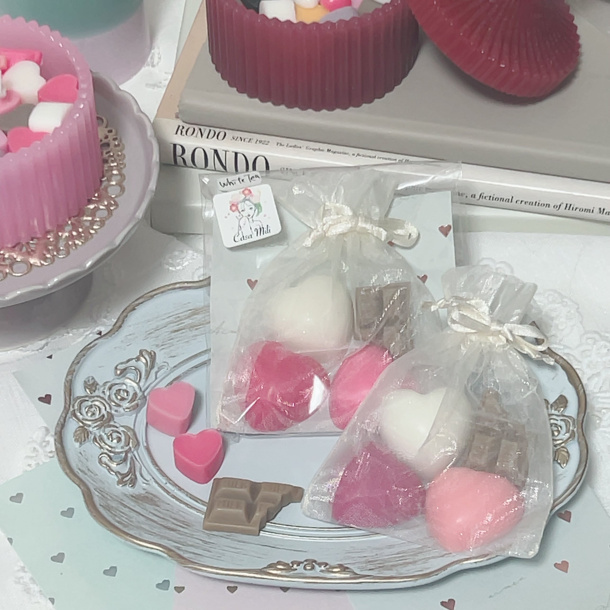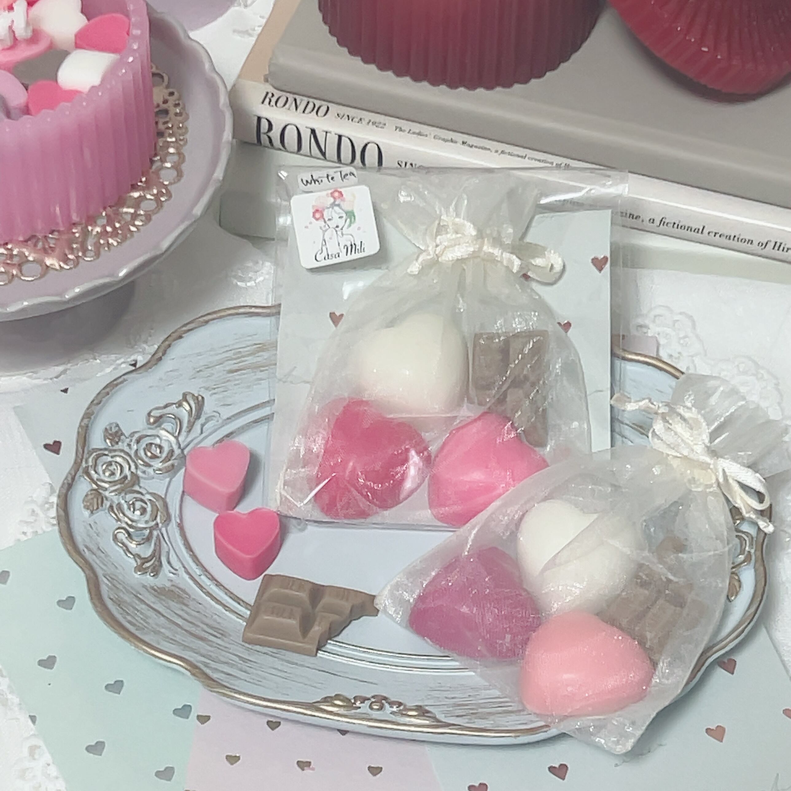 まるでお菓子のようなハートとチョコ型のサシェ。